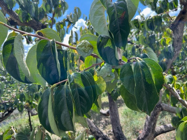 雨が無いせいで一本の柿の木がシワシワに😵