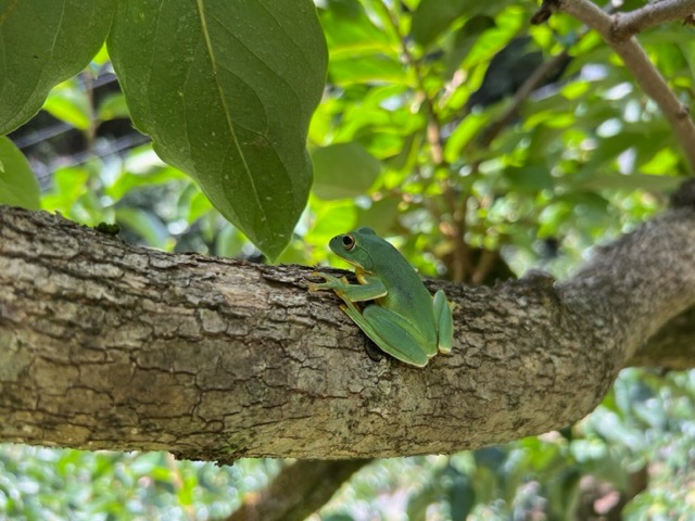 夏真っ盛りなこの時期柿の摘果をしていたら柿の木の木陰にカエルが🐸
