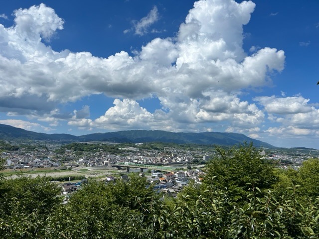 畑から景色を見ると夏の空。綺麗だけど暑さはもう少し手加減して欲しいな😣