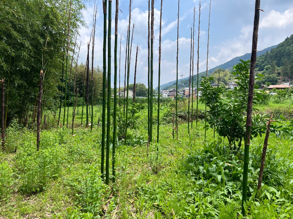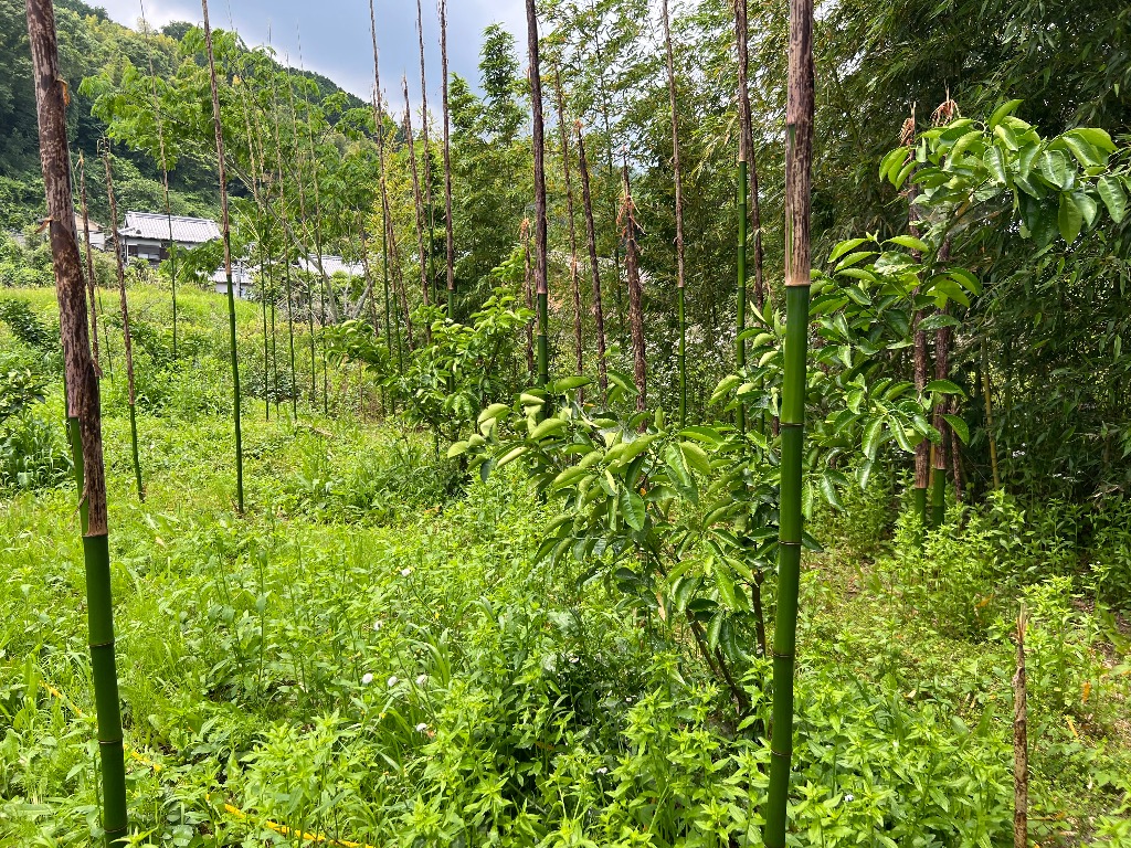 はっさくの消毒中に竹の群れに遭遇😅