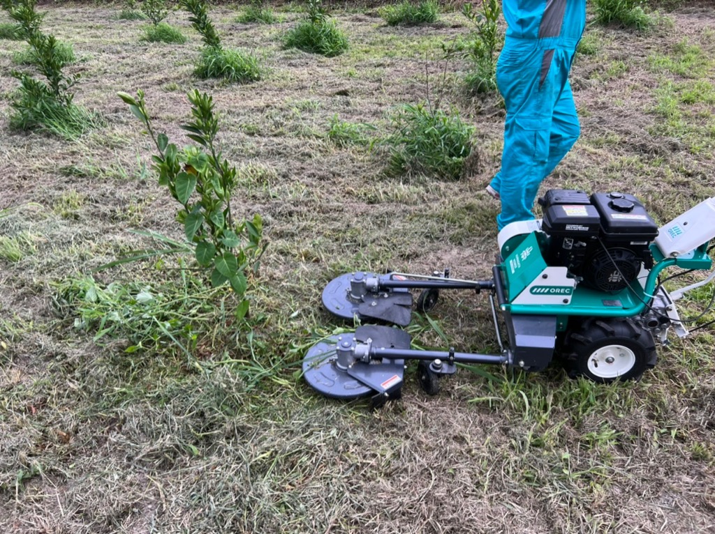 今日は、前に試運転してみたいと思っていたORECさんの幹周りや支柱用のクワガタもを今年に苗を植えたみかんの畑で試してみました。
