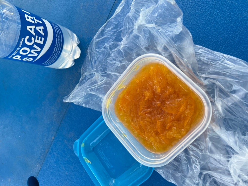 今日は、近所の人があげたはっさくではっさくジャムを作ってくれました。